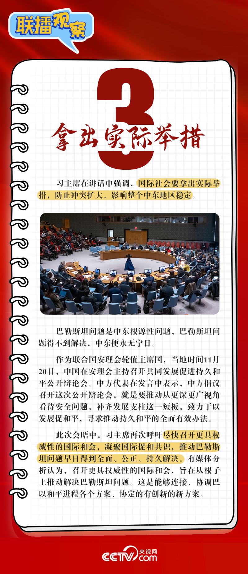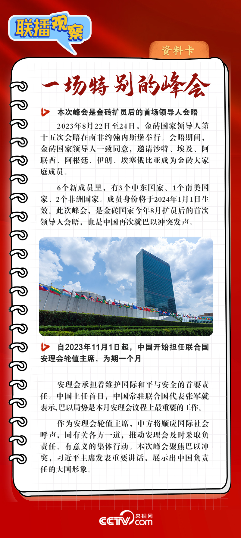 “當(dāng)前形勢(shì)下,金磚國家就巴以問題發(fā)出正義之聲、和平之聲,非常及時(shí)、非常必要?!痹诒敬螘?huì)晤中,習(xí)主席結(jié)合當(dāng)下巴以局勢(shì),提出三點(diǎn)正義主張。