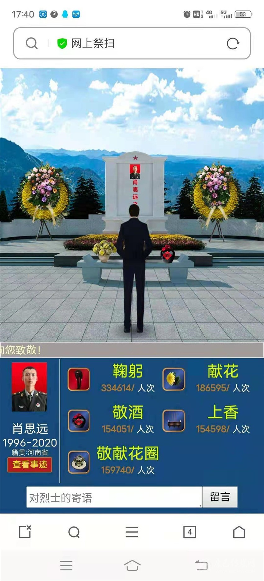 同時,該行轄內(nèi)廣泛組織開展告慰先烈?守護有我”線上文明祭掃活動,積極動員各縣(市)支行黨員干部登錄中華英烈網(wǎng)。